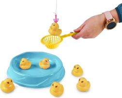 Zabavna vodna igra za male ribiče prinaša magnetno ribiško palico, plastični mini ribnik in 6 prikupnih račk. Dovolj je, da posodo napolnite z vodo, vstavite račke in začnete loviti – preprosto in varno zahvaljujoč magnetom. Odlična zabava, ki razvija fino motoriko in koordinacijo oko–roka.