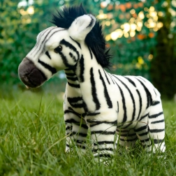 Ta stoječa plišasta zebra bo razveselila vsakega otroka in ljubitelje živali. Zaradi ročne izdelave in podrobnega, realističnega videza bo priljubljena družabnica za crkljanje in hkrati dekoracija otroške sobe. Nežen, na dotik prijeten material zagotavlja udobje in varnost pri igri.