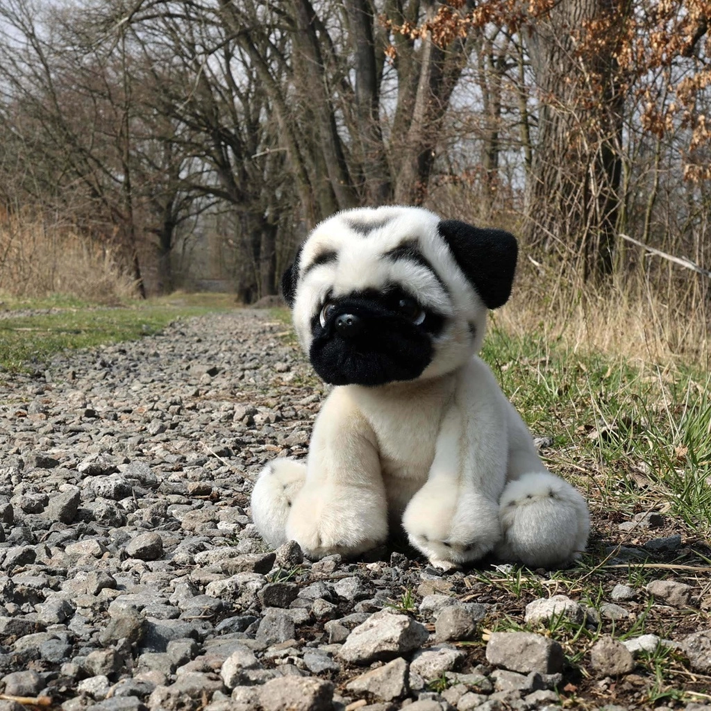 Ta mehak plišasti mops bo razveselil male in velike ljubitelje živali. Zvesto oblikovane obrazne poteze, črna uhlja in nežna dlaka ustvarjajo realističen videz, ki ga boste vzljubili na prvi dotik. Igrača je sešita z poudarkom na kakovosti in vzdržljivosti, da prenese vsakodnevno crkljanje.