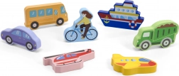 VIGA lesene puzzle s prevoznimi sredstvi so idealna izbira za zabavno in hkrati poučno igro. Naloga otrok je, da barvne koščke prevoznih sredstev priredijo ustreznim mestom na plošči, s čimer urijo natančnost gibov in koordinacijo. Posamezni koščki lahko služijo tudi kot samostojne figurice za dodatne igre.