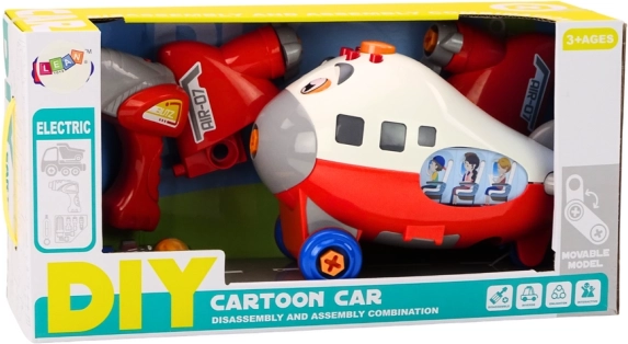 Zabavno in izobraževalno risano letalo za sestavljanje v živo rdeči barvi bo razveselilo vsakega malega konstruktorja. Z otroško vrtalno napravo in izvijačem z izmenljivimi nastavki si otroci letalo sami razstavijo in ponovno sestavijo ter tako razvijajo fino motoriko, logično razmišljanje in kreativnost. Vrteči se propeler in igriv dizajn spodbujata domišljijo in ure varne igre.
