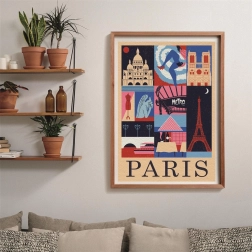 Motiv z Eifflovim stolpom in drugimi pariškimi ikonami izstopa z živimi barvami in visoko ostrino, ki poudari vsak detajl končne slike.