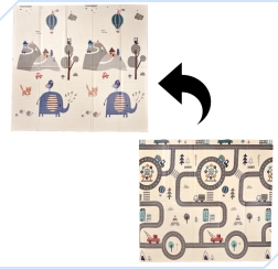 Praktična otroška igralna podloga iz XPE pene je dvostranska, zložljiva in ponuja prostorno ter mehko mesto za igro in prve korake. Ena stran prikazuje gozdne živalice in gričke, druga ceste in mesto za vožnjo avtomobilčkov. Enostavno čiščenje, izolacija pred mrazom in zaradi debeline 1 cm več udobja ter varnosti.