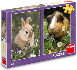 Otroški puzzle zajček in morske prašiček 2×48 kosov