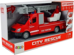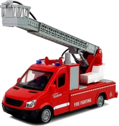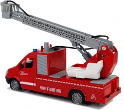 Vozilo je opremljeno s premičnim lestvom dolžine do 42 cm! Ne manjkajo niti diode, ki lahko pritegnejo pozornost z velike razdalje, in prednji vodni rezervoar, ki je vir za brizgalno črpalko – dovolj je le nekajkrat potisniti pumpico. Skupaj je igrača narejena v merilu 1:16.