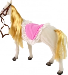 Lutka ima gibljive roke in noge, kar omogoča različne položaje, na primer stoje ali sede na konju. Njena elegantna obleka jo naredi pravo princeso. Konj je izdelan iz prijetnega materiala in zvesto prikazuje resničen videz živali.