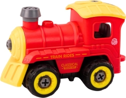 Ta rdeče‑rumena razstavljiva lokomotiva spremeni igro v ustvarjalno delavnico – otroci si stroj sami sestavijo s pomočjo izvijača, nato pa ga lahko upravljajo z vrtalnikom, ki deluje kot daljinski upravljalnik. Realistični zvoki vlaka in motorja še okrepijo doživetje vožnje in spodbujajo domišljijo.