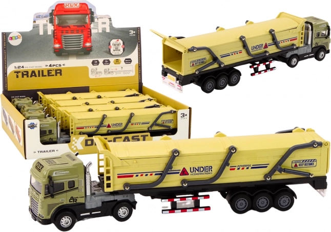 Realističen tovornjak s prikolico v merilu 1:24 bo s svojo funkcionalnostjo navdušil male voznike. Ponuja svetlobne in zvočne učinke, vztrajnikový pogon in odstranljivo prikolico. Odpirajoča se streha in vrata prikolice olajšata nakladanje peska ali gramoza ter spodbujata ustvarjalno igro. Varna zasnova, certifikata CE in skladnost z EN71.