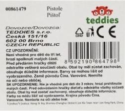 Zabavna otroška pištola, ki deluje na principu vztrajnika in je tako varna brez uporabe nabojev. Oddaja le realističen zvok vztrajnika, kar zagotavlja veliko akcije in igre brez nereda. Kompaktne mere 18 × 12 cm odlično sedejo v otroško roko. Primerno od 3 let.