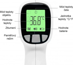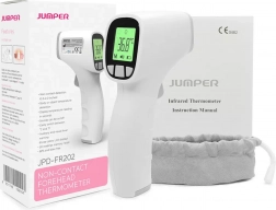 Brezkontaktni termometer JUMPER združuje hitrost, varnost in natančnost za vsakodnevno uporabo. Dovolj je usmeriti infrardeči senzor v sredino čela na razdalji 2–3 cm in v 1 sekundi se rezultat prikaže na preglednem osvetljenem zaslonu. Pri normalni temperaturi zaslon sveti zeleno, pri vročini se osvetli rdeče. Način tihega merjenja je posebej uporaben ponoči.