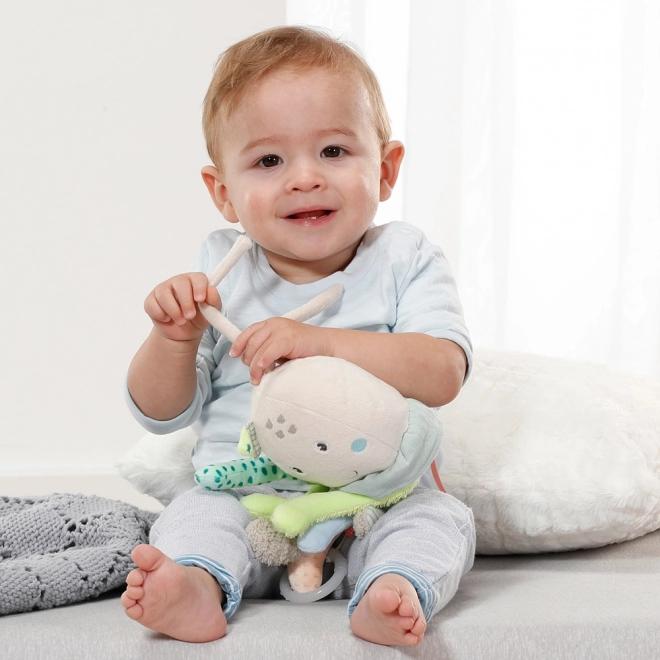 Nežna glasbena plišasta hobotnica OTROCI MORJA pomiri vašega dojenčka kjer koli – v posteljici in na poti. Uspavanka »Veš, koliko je na nebu zvezd?« igra 1,5–2 minuti zahvaljujoč vgrajenemu, snemljivemu navijalnemu mehanizmu. Mehka velur in mušelín sta prijetna na dotik in izdelana iz neškodljivih materialov – idealno darilo za novorojenčke.