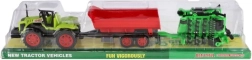 Traktor je izdelan iz kakovostnih materialov, ki zagotavljajo trdnost in varnost, kar je idealno za otroške igre in razvoj motoričnih spretnosti.