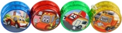 Jojo je na voljo v več barvnih različicah, vključno z modro, rdečo, zeleno in rumeno, vse z veselimi slikami prevoznih sredstev.