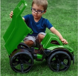 Prekucnik MAXIMUS v zeleni barvi navduši s futurističnim videzom, velikimi mat kolesi in natančno dodelanimi detajli. Lahek, a trden okvir je preprost za upravljanje tudi za manjše otroke, odporna plastika pa zlahka prenese igro na vrtu, v parku ali v otroški sobi.