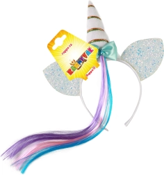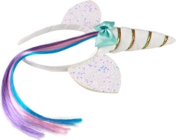 Prebudite otroško domišljijo s tem čarobnim naglavnim trakom v slogu samoroga. Bel naglavni trak z rogom, srebrnimi ušeski, okrasnim trakom in mavričnim pramenom las je idealen za pust, rojstnodnevne zabave in vsakodnevno preoblačenje. Primerno za otroke od 3 let.