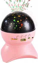 Zvezdni projektor in nočna lučka z Bluetooth zvočnikom, USB in LED – rožnata