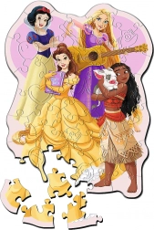 Lesene puzzle DISNEY Princeske bodo razveselile vsakogar, ki išče lepo in smiselno sestavljanje. Nepravilne oblike koščkov in skrite figurice s princeskinimi motivi prinašajo igriv izziv, ki zabava otroke in odrasle. Vsak košček je trden, barvno obstojen in na hrbtni strani dopolnjen z elegantnim vzorcem za še večji estetski užitek.