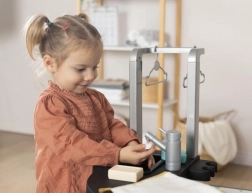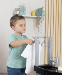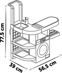 Otroci lahko uporabljajo štiri različne dele: pralni stroj, umivalnik, sušilno površino in likalno desko. Vsak del je zasnovan za ustvarjanje pristnih igralnih situacij.