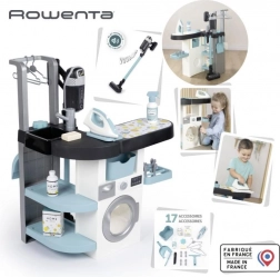 Otroška pralnica z likalnikom in sesalnikom Rowenta je odlična izbira za male domače pomočnike. Vsebuje štiri igralne dele: pralni stroj, umivalnik za ročno pranje, sušilni del in likalno desko, ki otroke učijo o domačih opravilih.