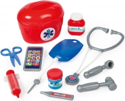 Komplet vsebuje kovček in realistične dodatke, kot so stetoskop, injekcija, termometer, škarje in drugi elementi za pregled pacienta. Lahka konstrukcija s težo le 1,085 kg zagotavlja udobno premikanje po stanovanju in otroški sobi.