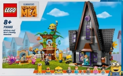 Z LEGO setom Gru in Minioni: Družinska rezidenca si lahko otroci privoščijo pravo filmsko avanturo. Sestavite znane stavbe, kot sta Grujeva ikonična hiša in barvita hiška na drevesu, polna podrobnosti, kot so rdeč kavč, kamin in spalnica v raketnem slogu. Set vključuje tudi laboratorij, poln zabavnih pripomočkov, ki bodo zagnali vašo domišljijo!