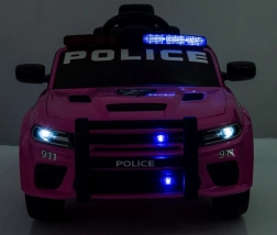 Stilski otroški električni avto v policijskem dizajnu DODGE Charger v rožnati barvi ponuja realističen videz, LED luči, odpirajoča se vrata in varnostni pas za udobno in varno vožnjo, polno domišljije.