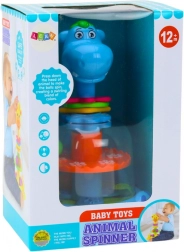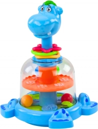 Prisrčen bacek v obliki povodnega konja prinaša otrokom od 12 mesecev ure veselja in učenja. Ob pritisku na glavico se znotraj zavrti kolesce in štiri barvne kroglice začnejo poskakovati – prava očarljiva predstava za male raziskovalce. Igrača je izdelana iz trpežnih, varnih materialov, ima velike, lahko oprijemljive dele in podpira fino motoriko, koordinacijo oko–roka ter razlikovanje oblik in barv.