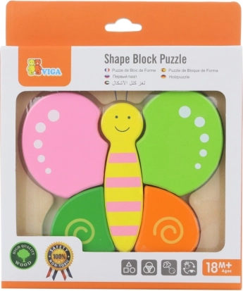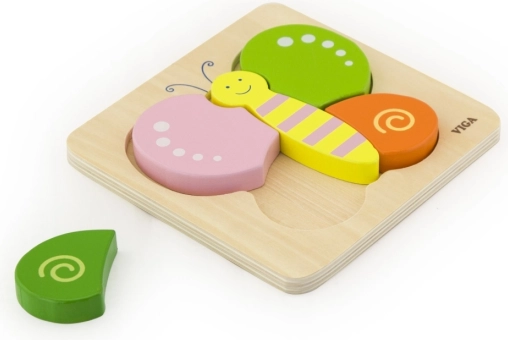 Predstavljamo vam leseno sestavljanko v obliki metuljčka znamke Viga. Ta sestavljanka je idealna za domačo uporabo ali uporabo v vrtcih.