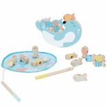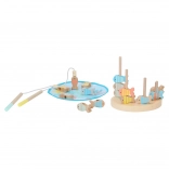 Komplet vsebuje vse za takojšnjo igro – ribice, 2 palici, igralno podlogo »jezerce« in balančno figurico. Varno, trpežno in prijetno na dotik zahvaljujoč naravnemu lesu in gladki obdelavi.