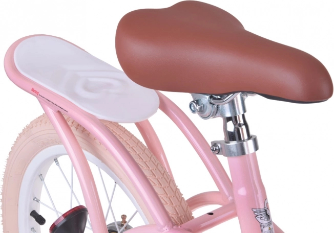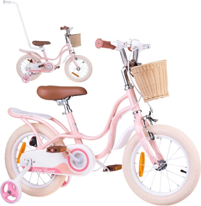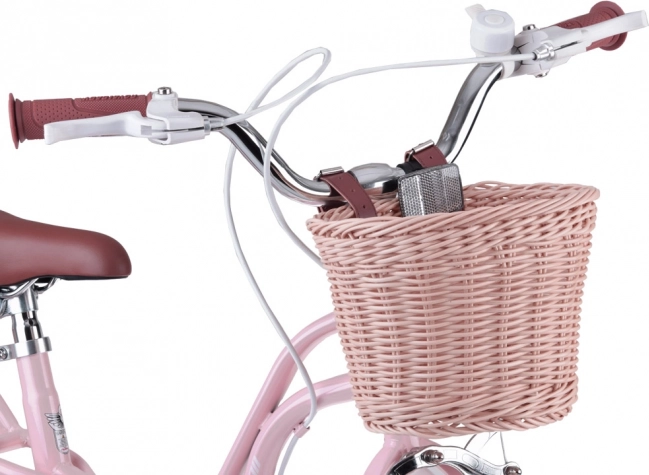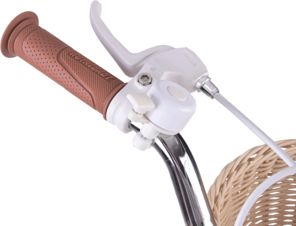 Retro videz dopolnjuje pletena košarica, rjavi detajli in pokrov verige z motivom labodjih kril. Za boljšo vidnost je kolo opremljeno z odsevniki spredaj, zadaj in v kolesih, blatniki in zvoncem. Del kompleta sta tudi vodilna palica za starše in široko postavljena pomožna kolesca za maksimalno stabilnost.