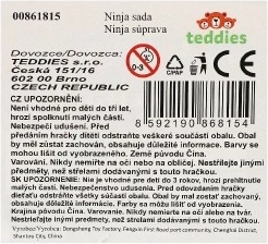 Set vključuje vso potrebno opremo za male ninje, vključno z shurikeni in dodatki, da se vsakdo lahko postane mojster boja.