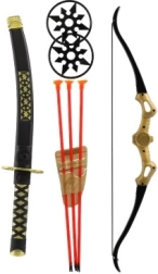 Ta ninja komplet je idealen za vse male pustolovce, ki se želijo preobraziti v prave ninja bojevnike. Set vključuje vse, kar potrebujete za realistično in varno igro, vključno z mečem s podrobnostmi, lokom s priseskovimi puščicami in dodatki.