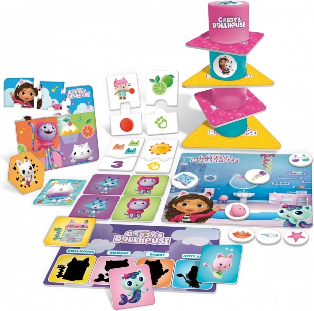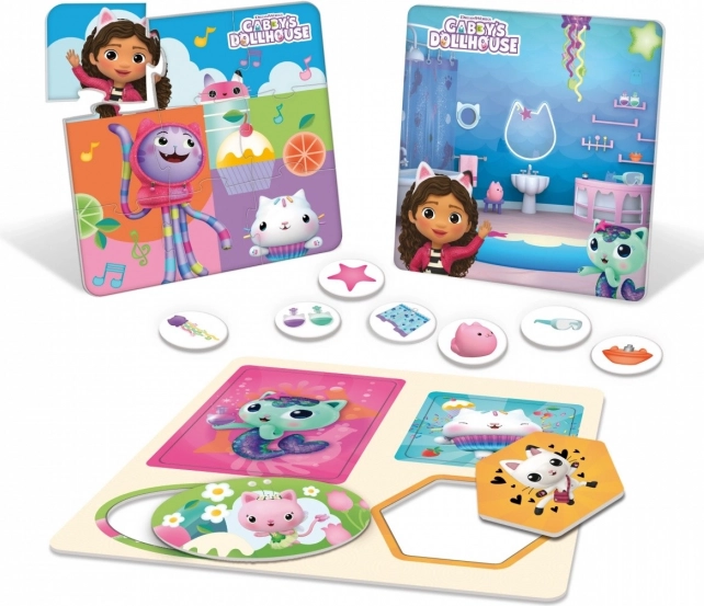 Tematske plošče in ilustracije iz Gabinine čarobne hišice spodbujajo otroke k odkrivanju števil, predmetov in preprostih pravil med igro.