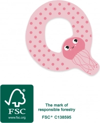 Leseno črka Q z veselim oblikovanjem z meduzo je idealen dodatek k vsaki otroški sobi in učnim pripomočkom za sestavljanje besed. Izdelano iz certificiranega FSC lesa, ki zagotavlja trajnostni vir.