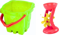 Barvit komplet igrač za pesek z vedrom v obliki gradu, mlinčkom, lopatko, grabljicami, štirimi modelčki in sitom prinaša ure zunanje zabave. Vse je izdelano iz trpežne plastike, varne za otroke, z privlačnimi barvami, ki spodbujajo igro. Spodbuja ustvarjalnost, razvoj fine motorike in koordinacijo gibov. Primerno za plažo, peskovnik in vrt.
