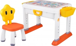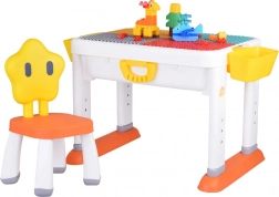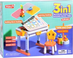 Večnamenska otroška miza 3v1 z nastavljivimi nogami po višini, dvostransko ploščo za kocke in pisanje ter praktičnim shranjevalnim prostorom. V paketu je tudi udoben stolček s stabilnimi nogami. Idealna za igro, učenje in prehranjevanje – vse na enem mestu. Dvostranska plošča, nastavljiva višina, shranjevalni zaboj, 55 kock v kompletu ter protizdrsni elementi za varno uporabo.