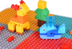 Ena stran z izboklinami za gradnike, druga gladka za risanje, učenje in namizne igre – vse na enem mestu.