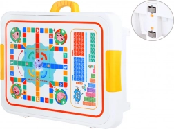 • Dvostranska plošča: izbokline za kocke / gladka stran za pisanje in igre