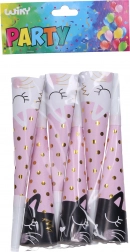 Prinesite nasmeh na obraze z našimi zabavnimi trobenticami z motivom mačke. So idealne za zabavne trenutke na rojstnodnevnih zabavah, otroških zabavah ali drugih posebnih dogodkih. Pakiranje vsebuje šest različnih trobentic, ki vsaki zabavi dodajo neponovljivo vzdušje.