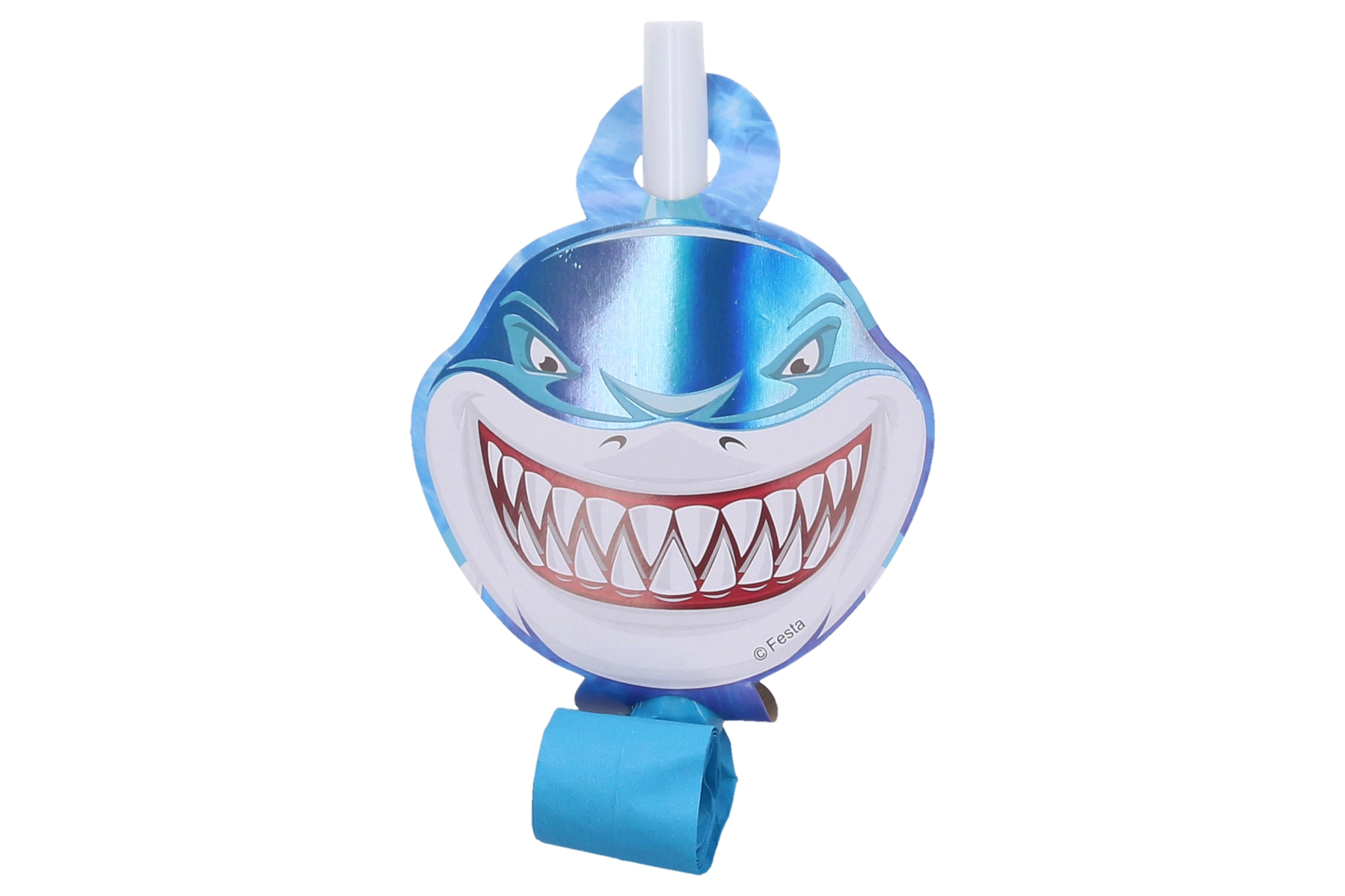 Preprosta uporaba in efektna zasnova delata te trobentice priljubljen party dodatek. Kombinirajte jih z drugimi okraski v modrih tonih in z motivom morskega psa za enoten videz zabave.