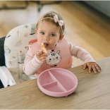 Silikonski krožnik v roza barvi s tremi predelki je idealna izbira za otroke in malčke. Izdelan je iz visokokakovostnega silikona, ki ga je enostavno čistiti in je trpežen.