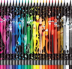 Komplet 24 ergonomskih barvic z motivi pošasti. Odporno jedro in enostavno šiljenje za tekoče in jasne risbe.