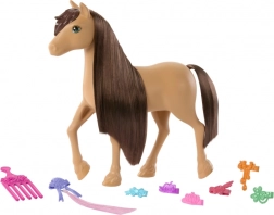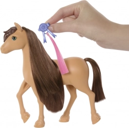 Konjiček Barbie Pepper ima dolgo in čudovito grivo, ki jo je mogoče zlahka česati in okraševati s pramenom za pripenjanje ter različnimi sponkami.