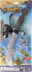 Ta piratski komplet spremeni vsak dan v pustolovščino. Otroci bodo vzljubili realističen videz plastičnega meča z okrašenim ročajem ter komplet dodatkov kovinskega videza z obeski in žetoni s piratskimi motivi. Odlična izbira za pust, otroške zabave in domačo igro.