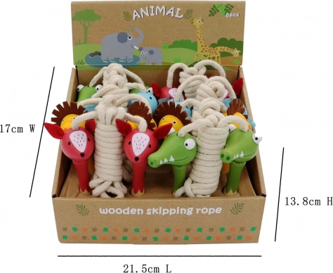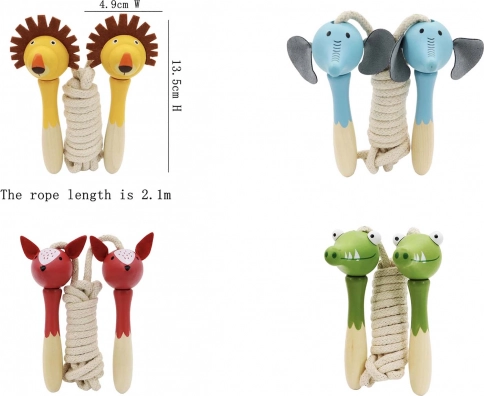 Prisrčna kolebnica z lesenimi ročaji razveseli vsakega malega skakalca. Zaradi dolžine 210 cm in veselih živalskih motivov (slon, lev, krokodil, lisica) prinaša veselje do gibanja in pomaga razvijati ritem, spretnost in koordinacijo.