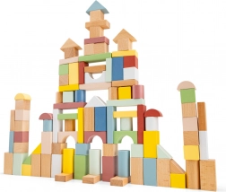 Odkrijte neskončne možnosti s to leseno sestavljanko, ki otrokom omogoča gradnjo vsega od stolpov, gradov do hiš. Igra s kockami podpira fino motoriko in koordinacijo oko–roka, pri čemer otroci razvijajo domišljijo in sposobnost reševanja problemov. Vsaka igrača je izdelana iz 100 % certificiranega lesa, kar zagotavlja okolju prijazen značaj.