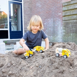 Vsako vozilo je skrbno izdelano iz trpežne plastike in ponuja različne možnosti igre. Z njimi si lahko otroci ustvarijo svoje malo gradbišče, ki spodbuja domišljijo ter izboljšuje reševanje problemov in koordinacijo rok in oči.