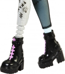 Spoznajte ikonično dijakinjo MONSTER HIGH – Frankie Stein. Ta lutka izstopa z impresivno mešanico punk in techno sloga: jeans jakna, kratke hlače, izraziti uhani v obliki strel in črni gležnjarji z rožnatim zavezovanjem. Zahvaljujoč zglobom za nastavljanje poz zlahka ustvarite kul prizore in zgodbe.