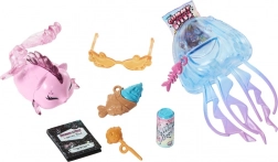 Punčka Lagoona Blue je pripravljena vladati globinam in modnim trendom. Ima dolge, delno spete lase s pastelnimi prameni, rožnat top z motivom ribjih kosti in pisane hlače v slogu Y2K. Zahvaljujoč sklepom je zlahka nastavljiva in primerna za domiselne prizore ter fotografiranje.