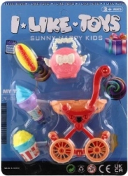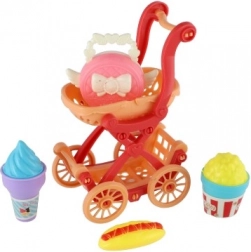 Komplet vsebuje voziček in druge dodatke, ki posnemajo predmete za vsakodnevno uporabo. Vse to pomaga otrokom pridobivati pomembne socialne veščine in spodbuja ustvarjalno igro.